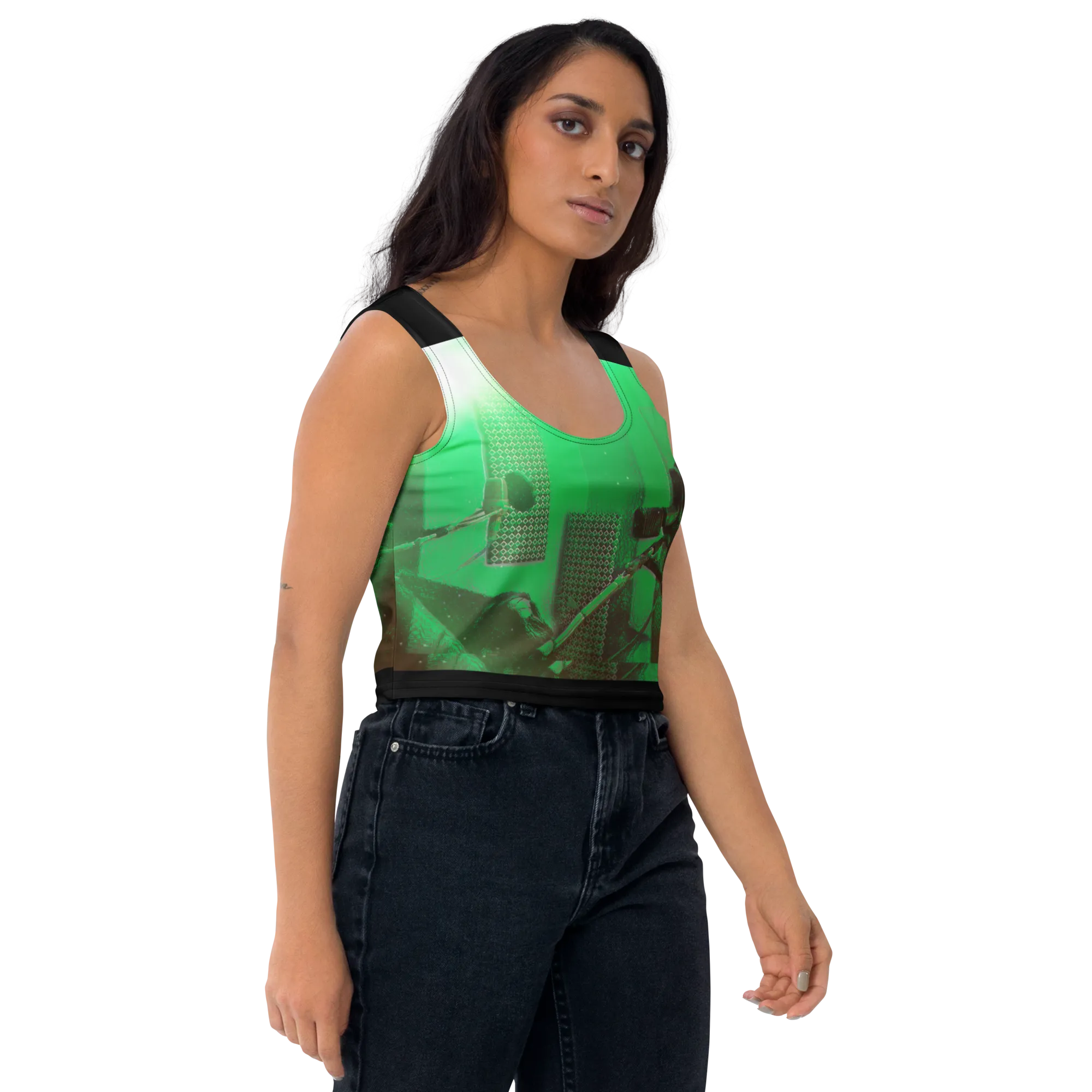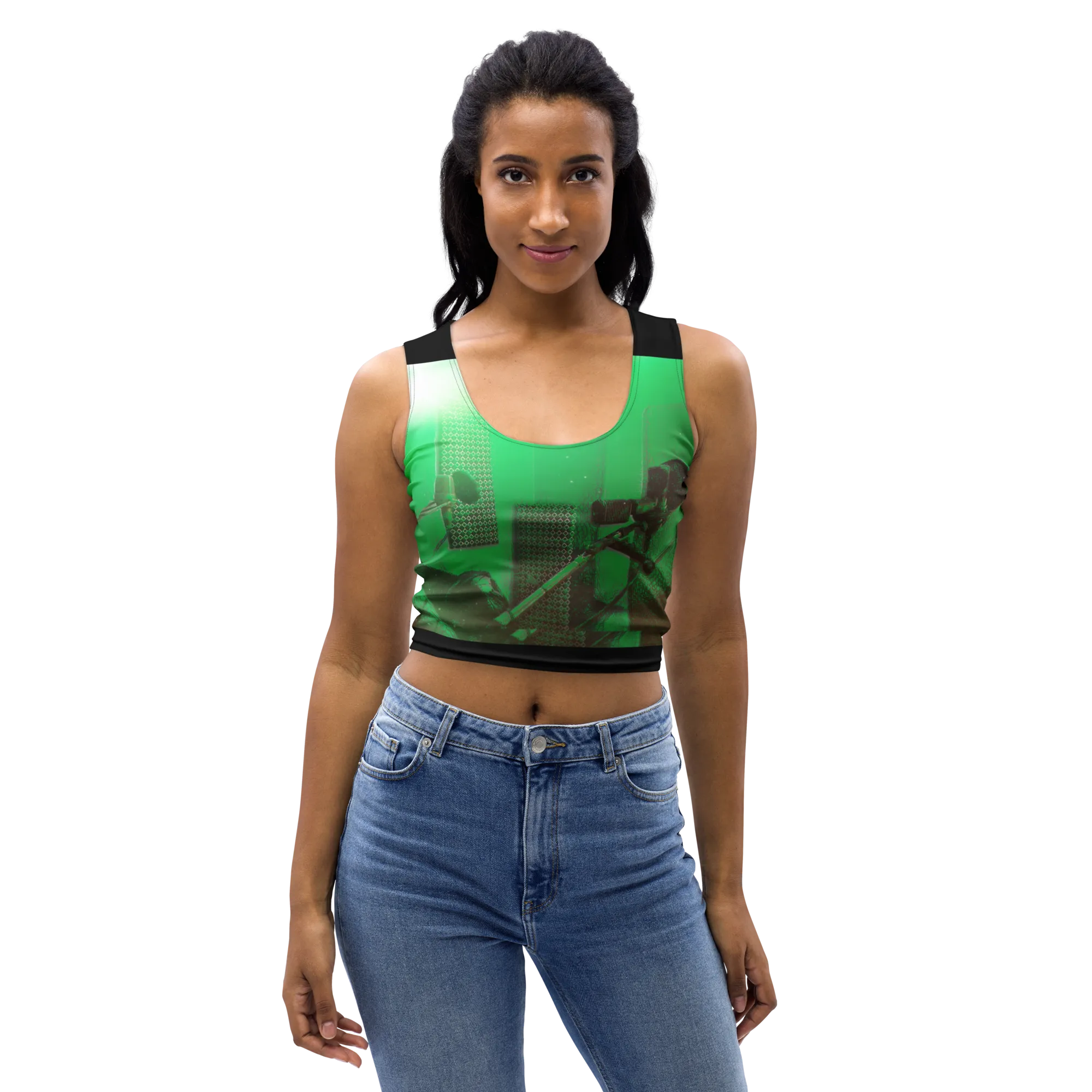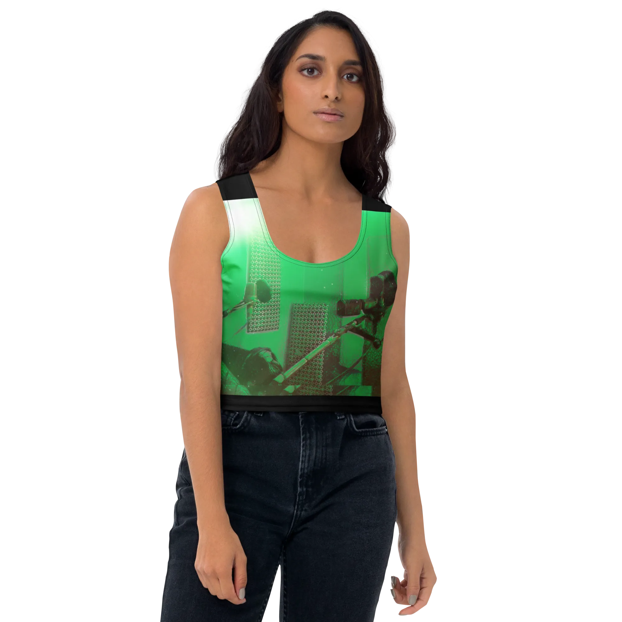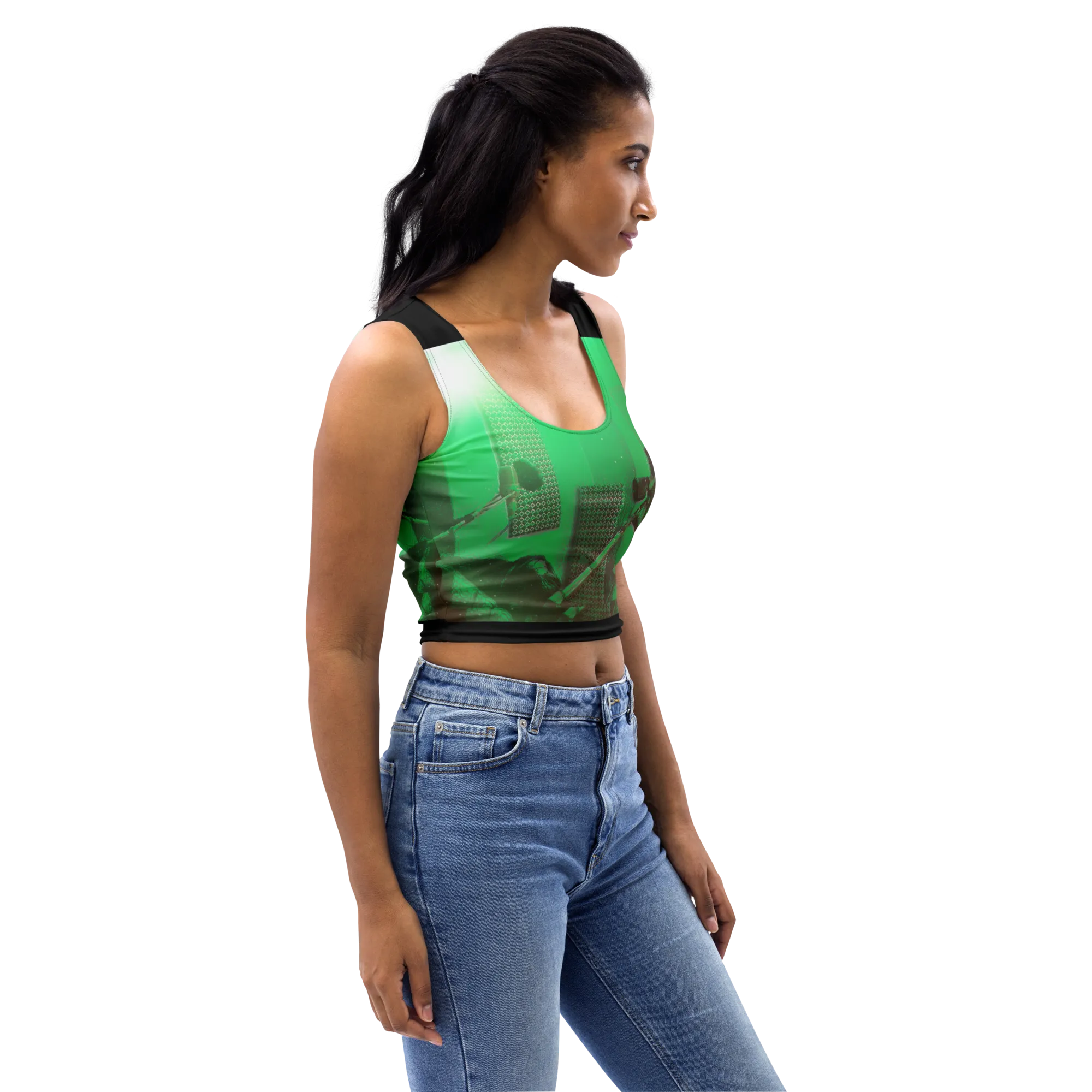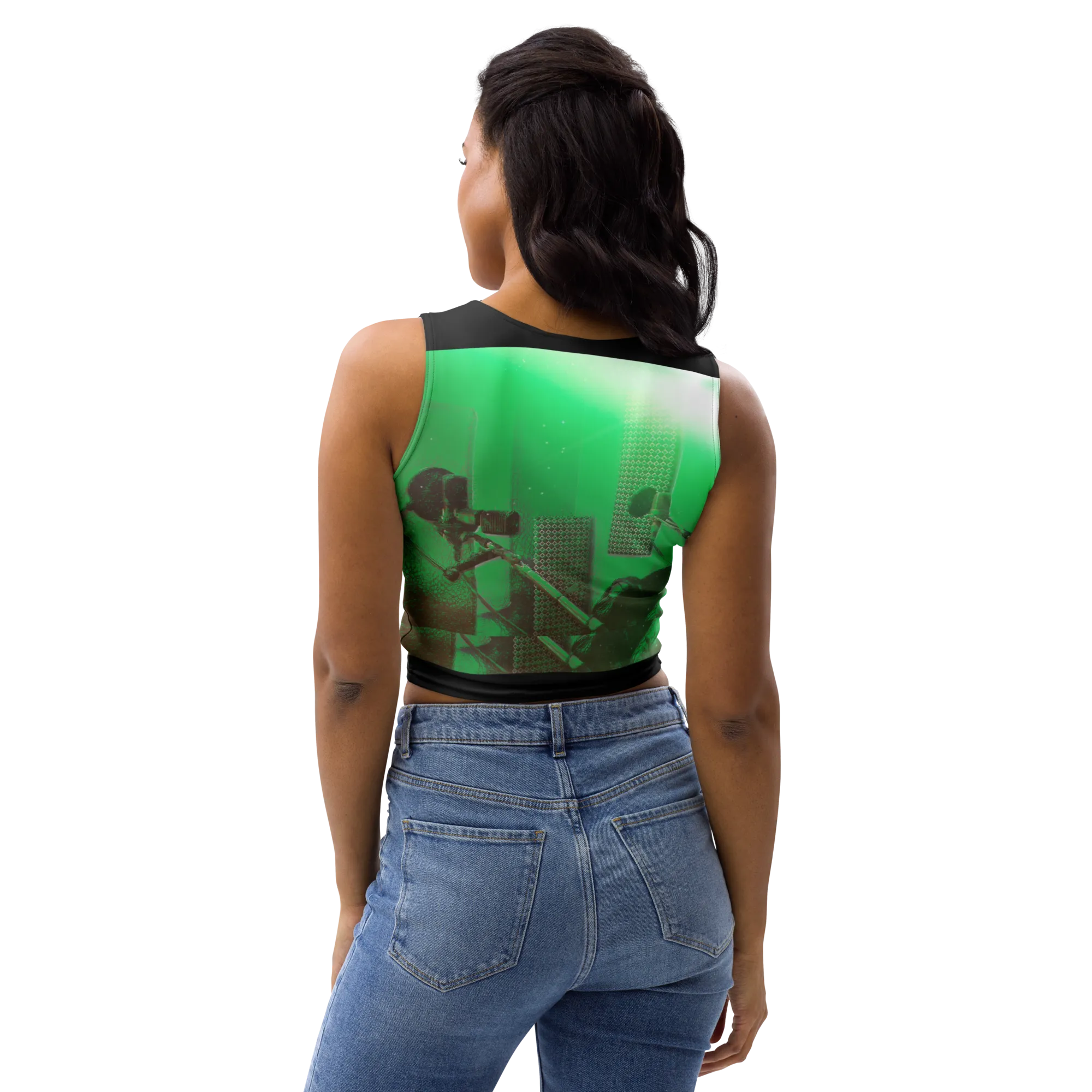 ABS Green Mic 1 BLK Crop Top