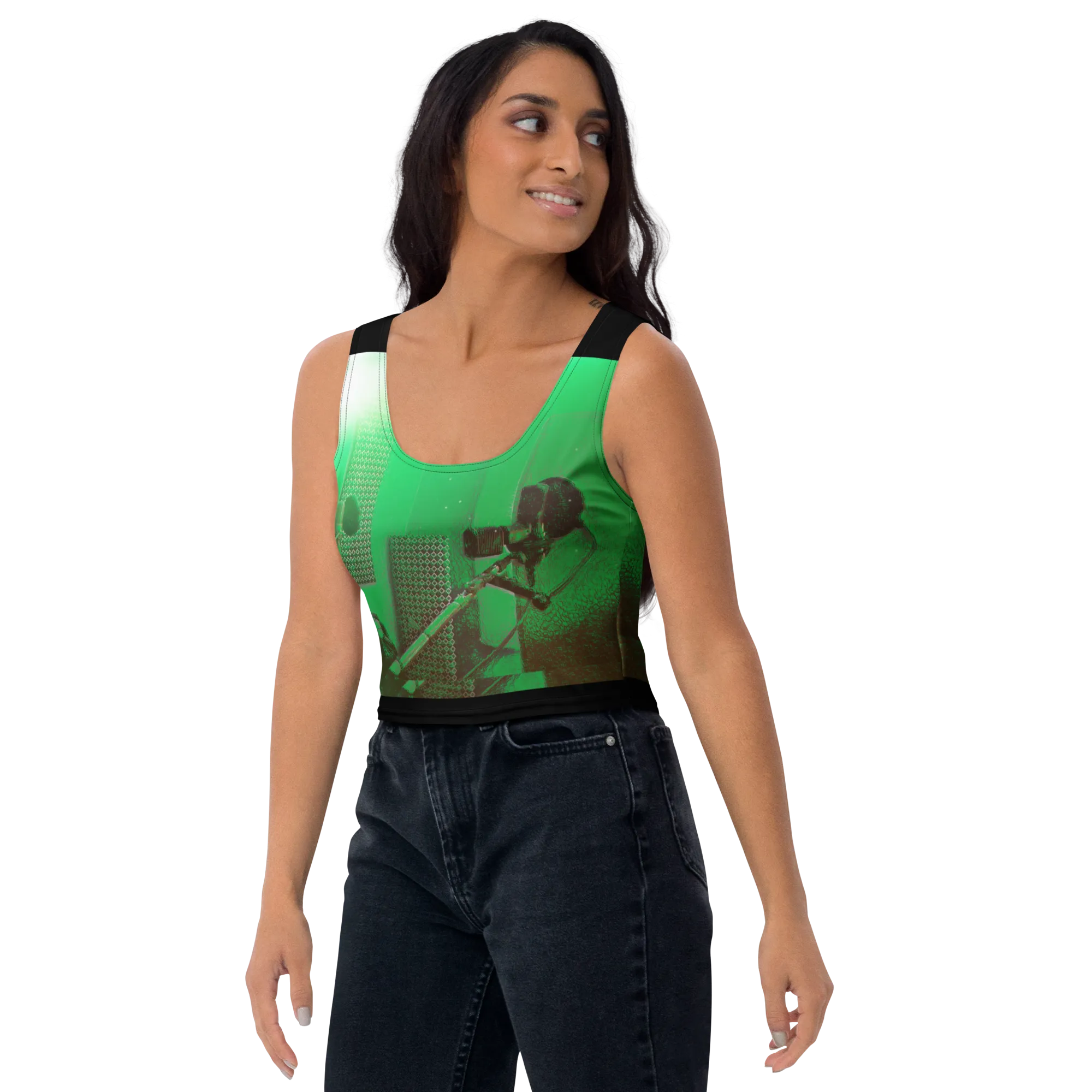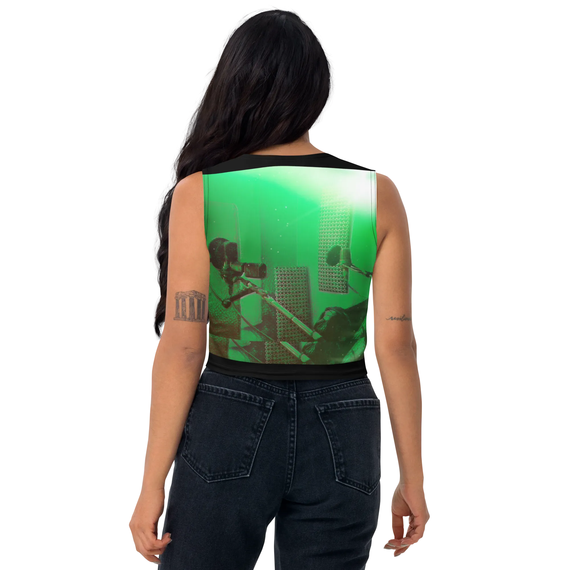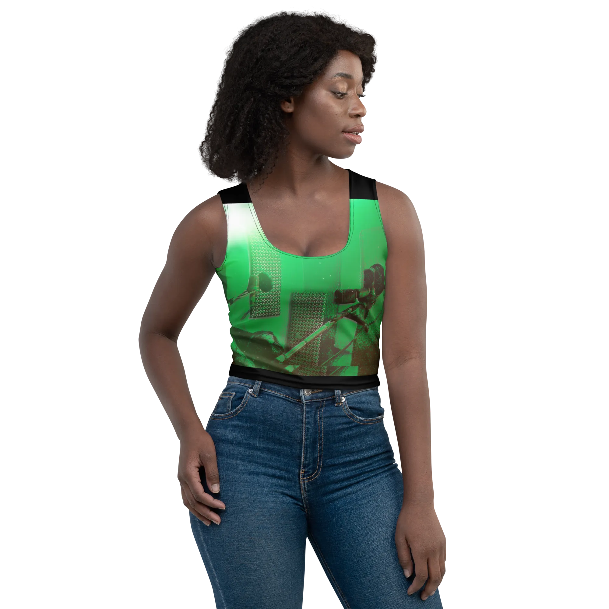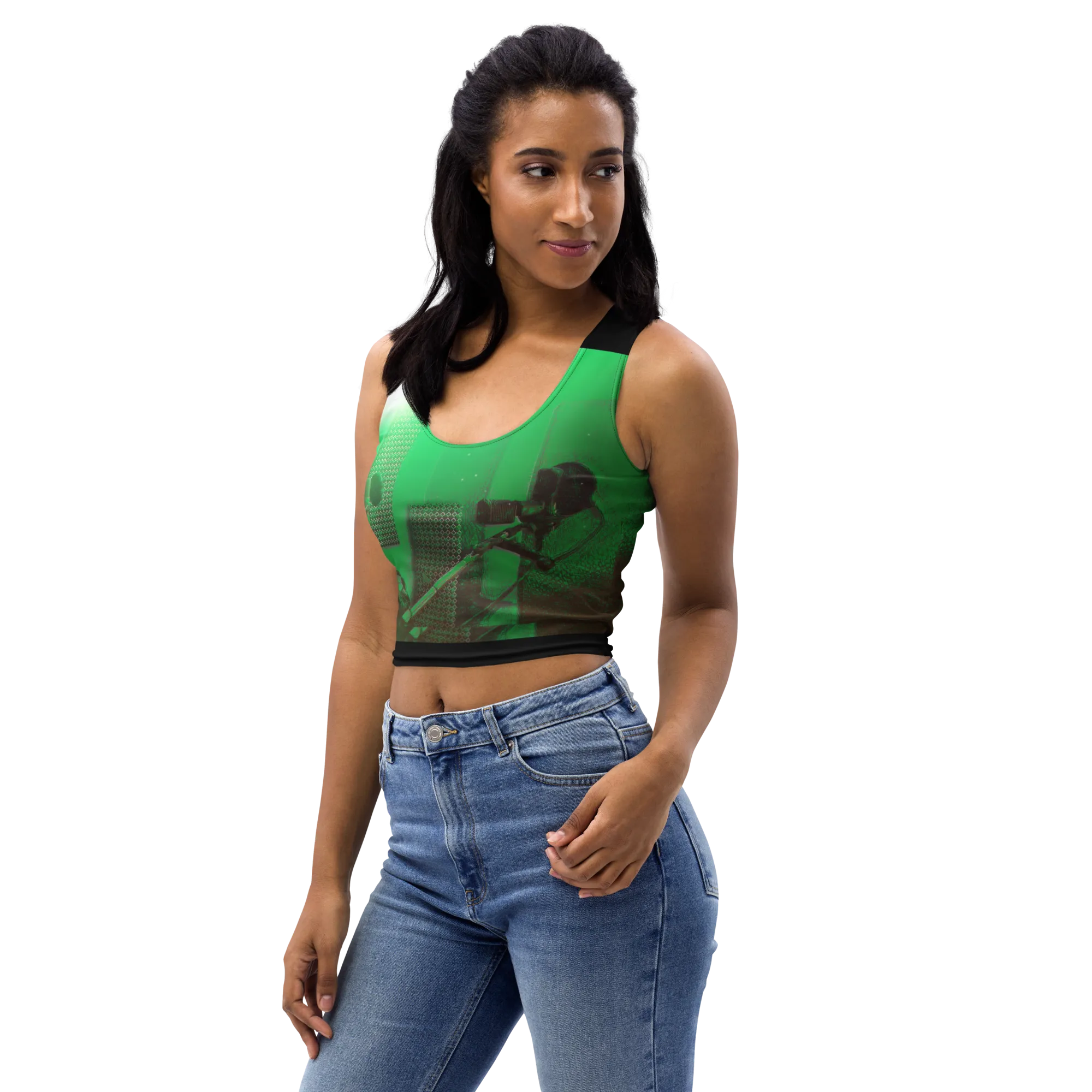 ABS Green Mic 1 BLK Crop Top