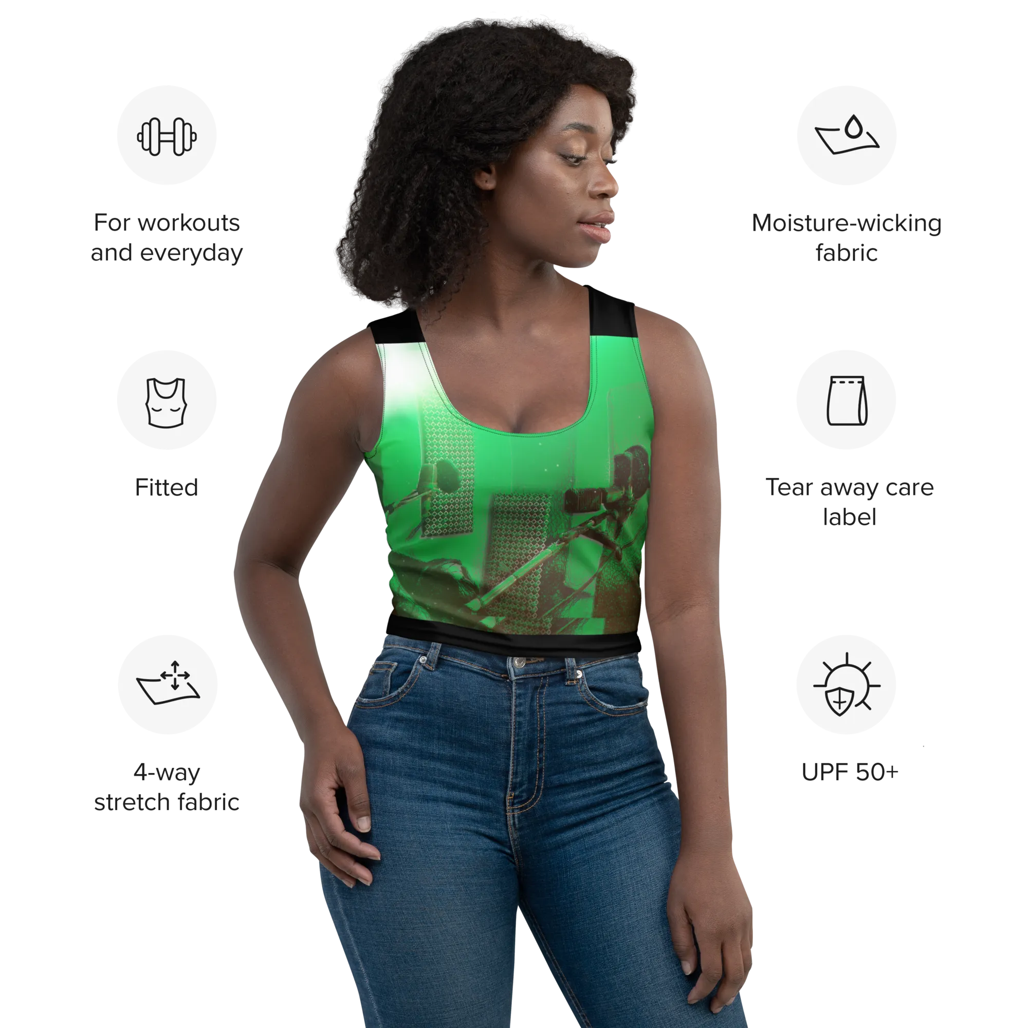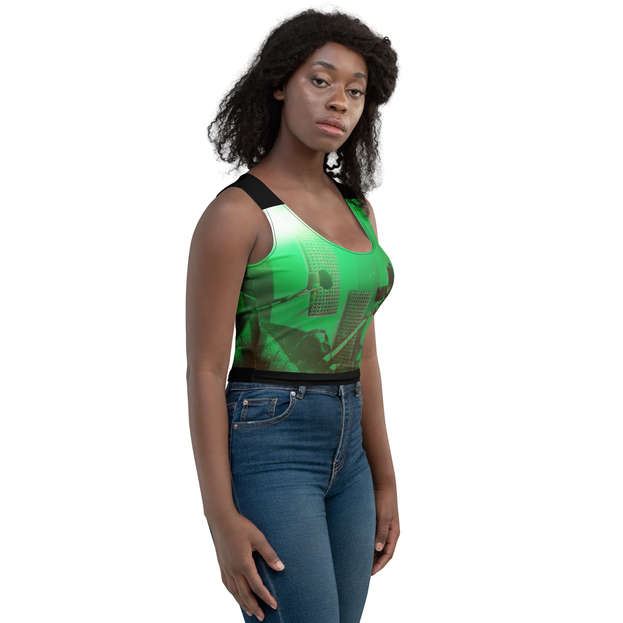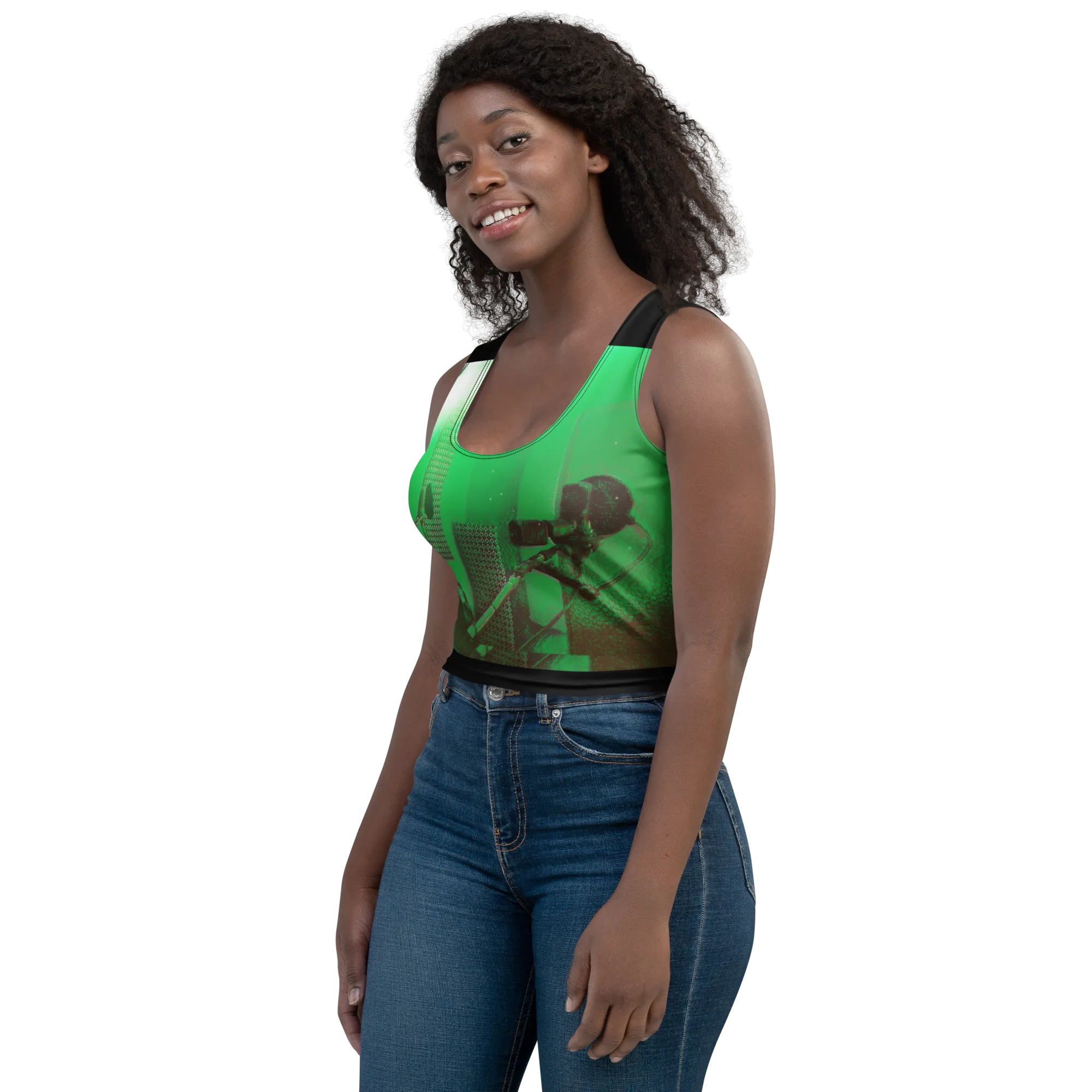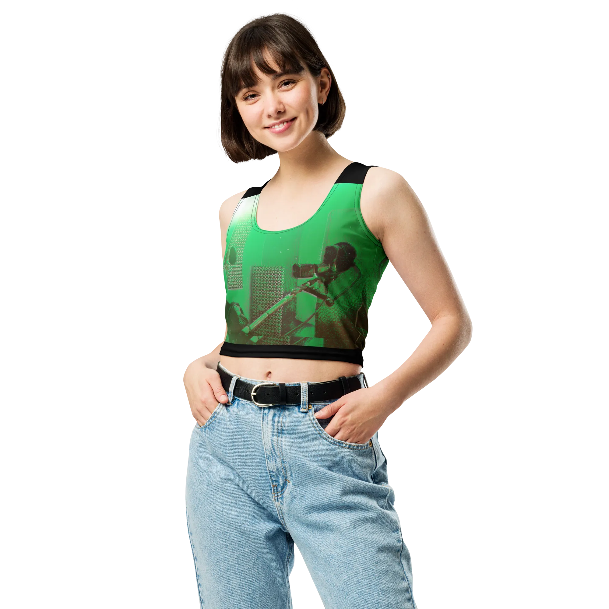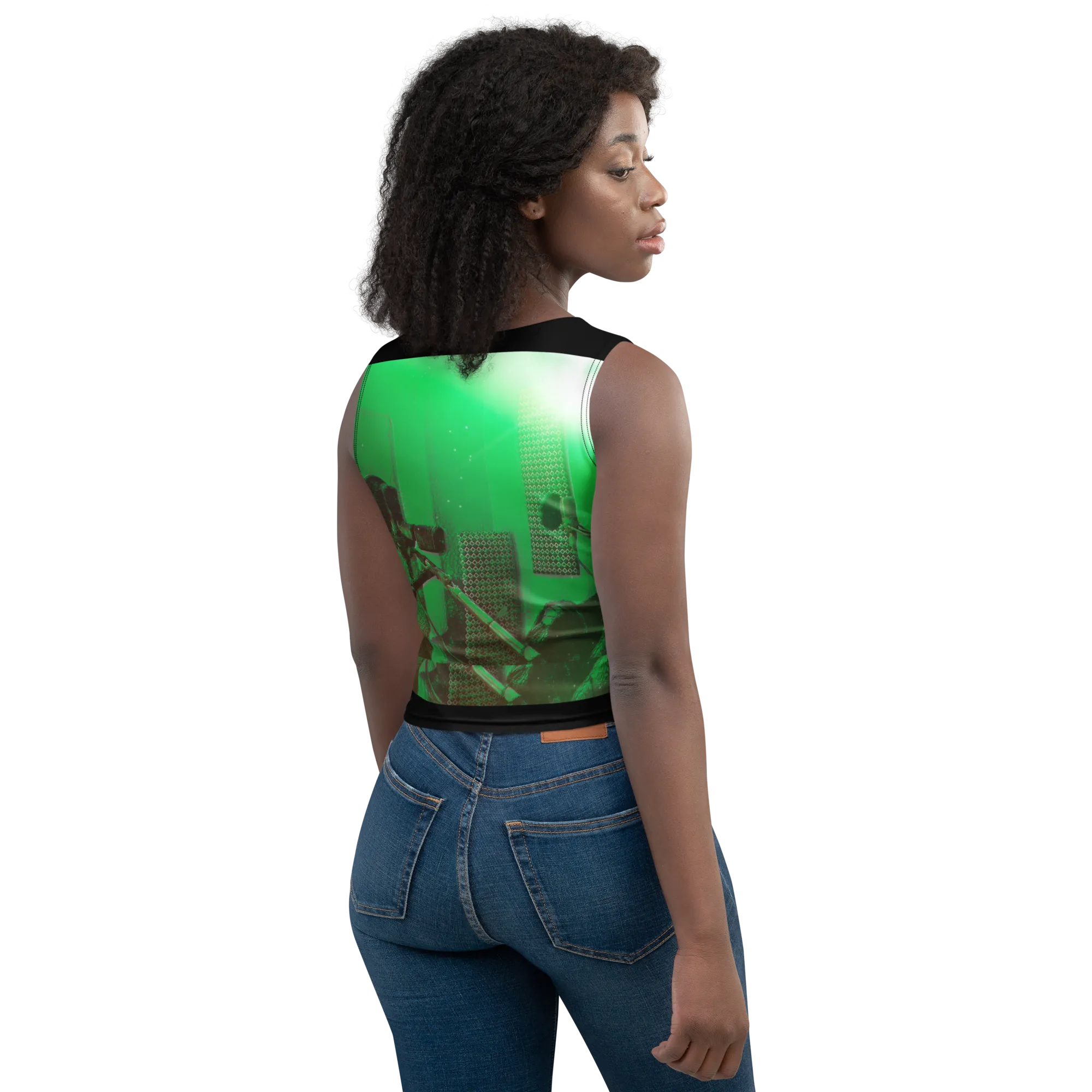 ABS Green Mic 1 BLK Crop Top
