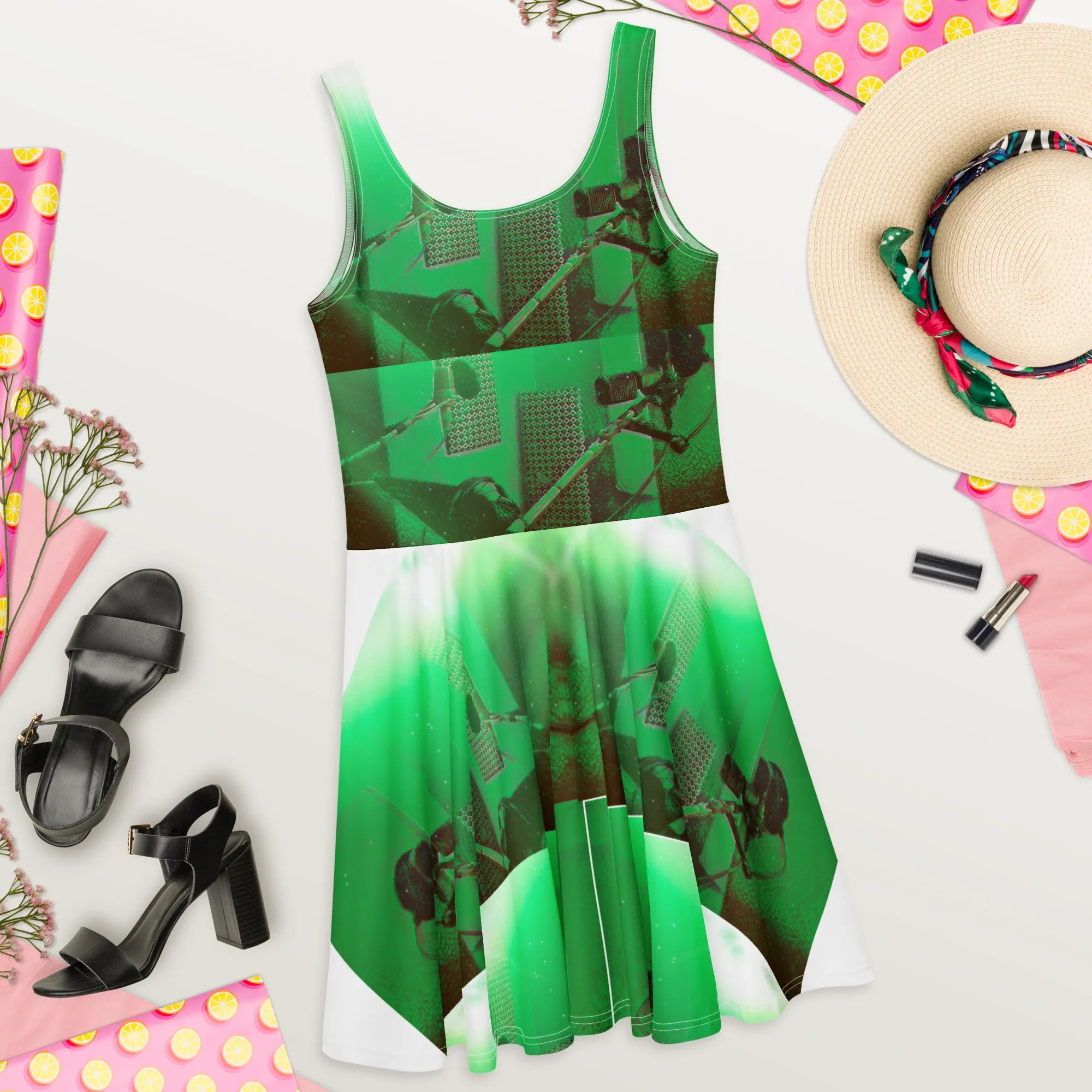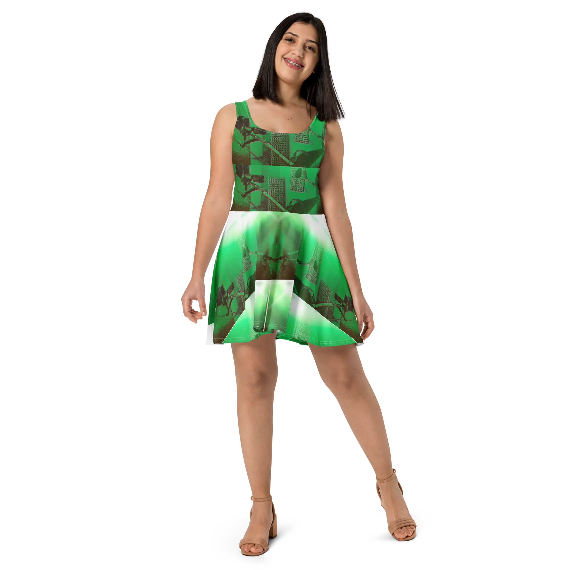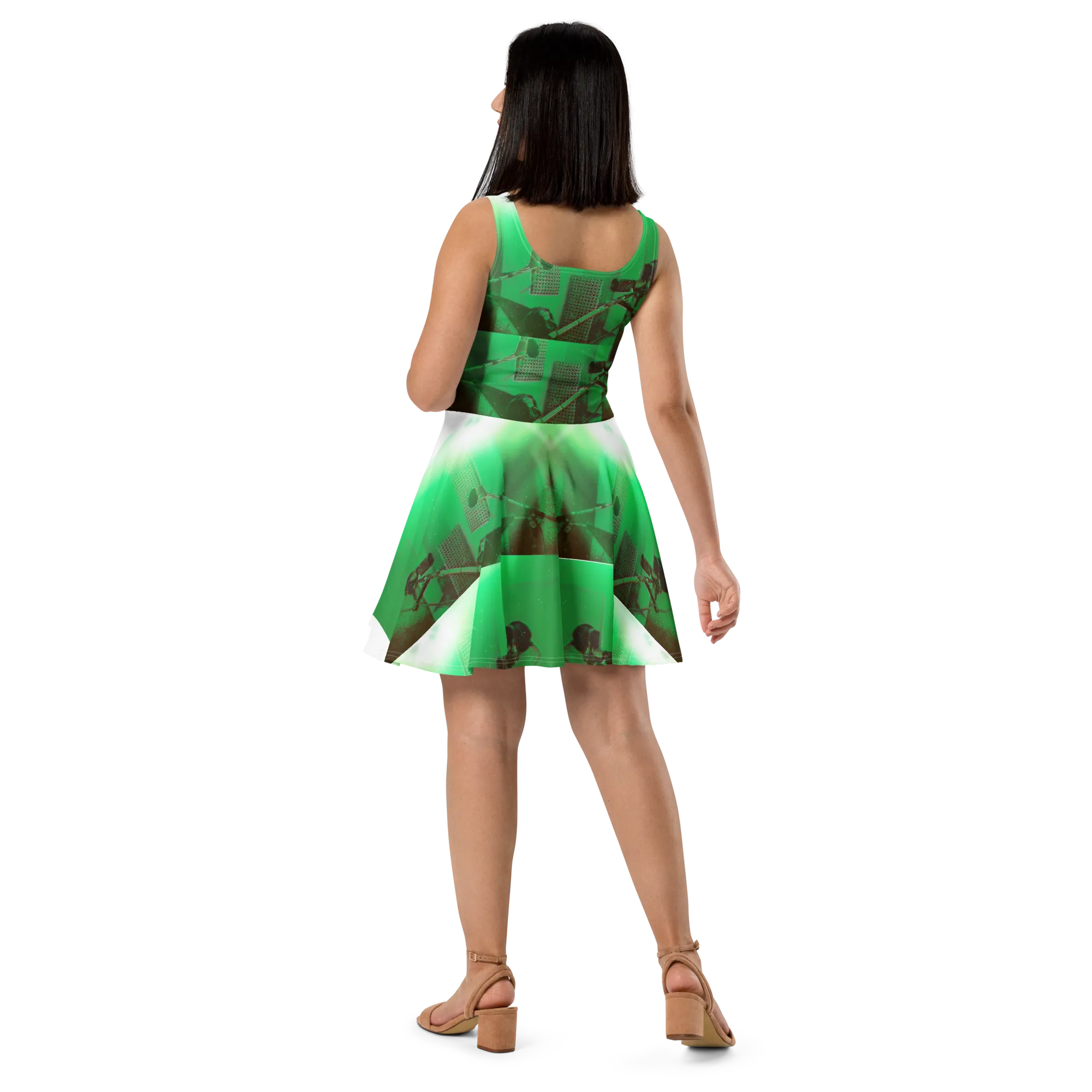 ABS Green Mic 1 WHT Women's Skater Dress