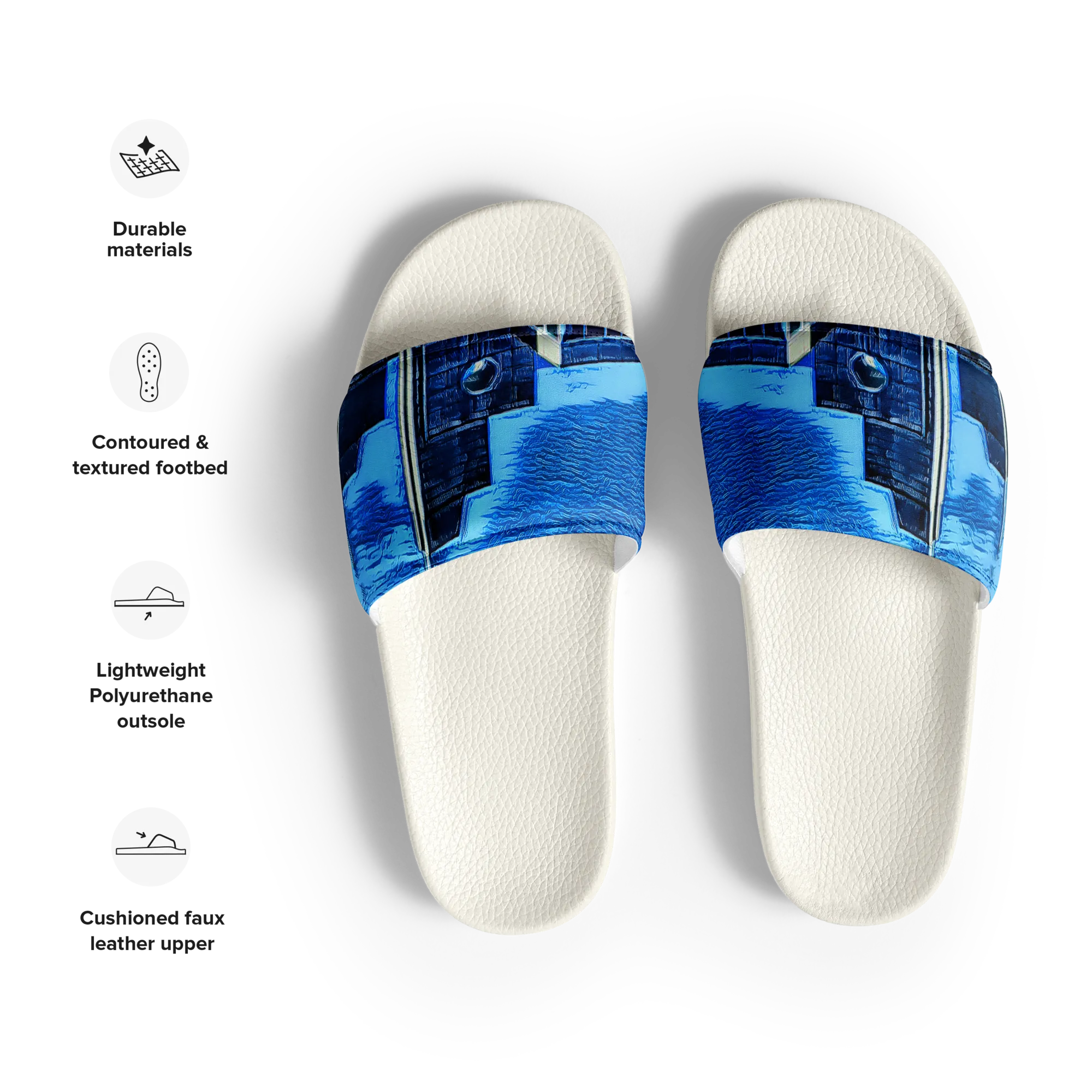 The AIFFIA BLDG 1 WHT Women's slides combine comfort and functionality, perfect for the beach or pool. With a cushioned faux leather strap and contoured footbed, they offer secure, all-day comfort. Lightweight, durable, and handmade with premium stitching, these slides are a summer essential.
