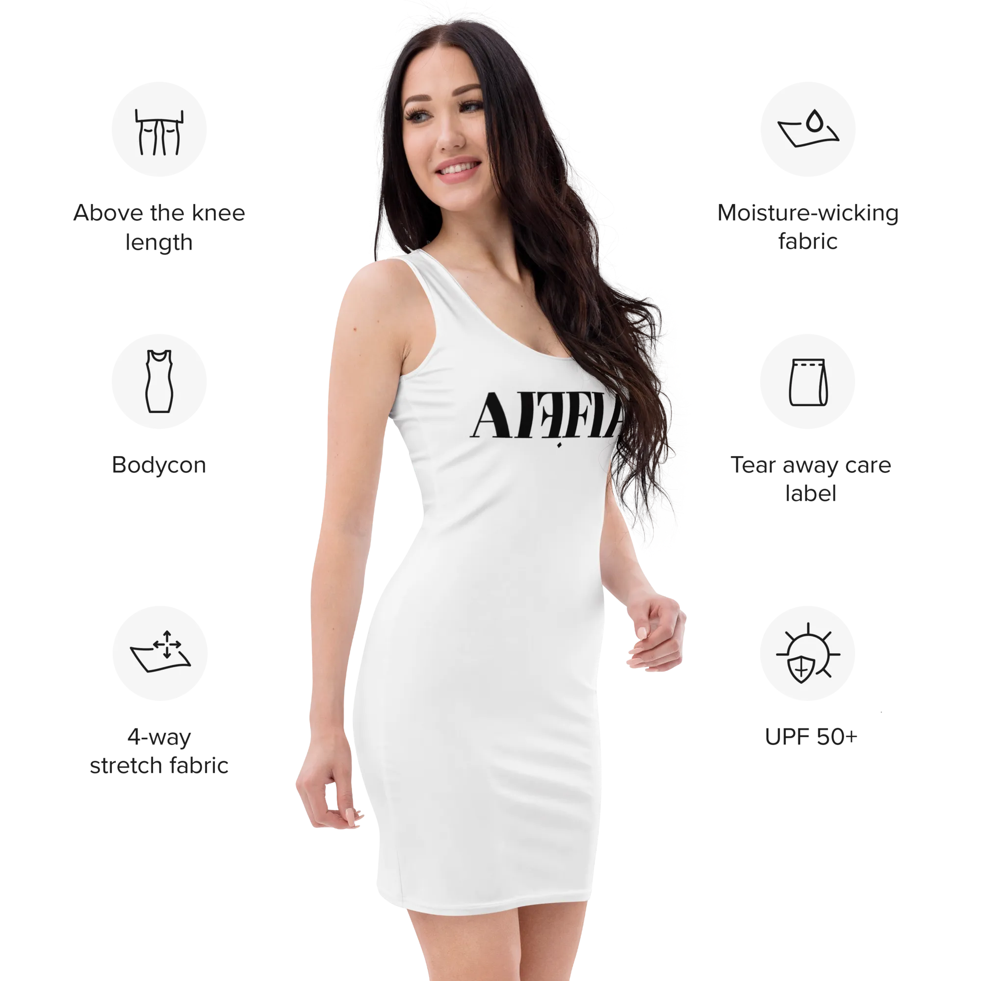Elevate your wardrobe with the AIFFIA Logo WHT Out Women's Bodycon dress—stylish, comfortable, and versatile. Perfect for a night out or casual wear, this dress is designed to make a statement.