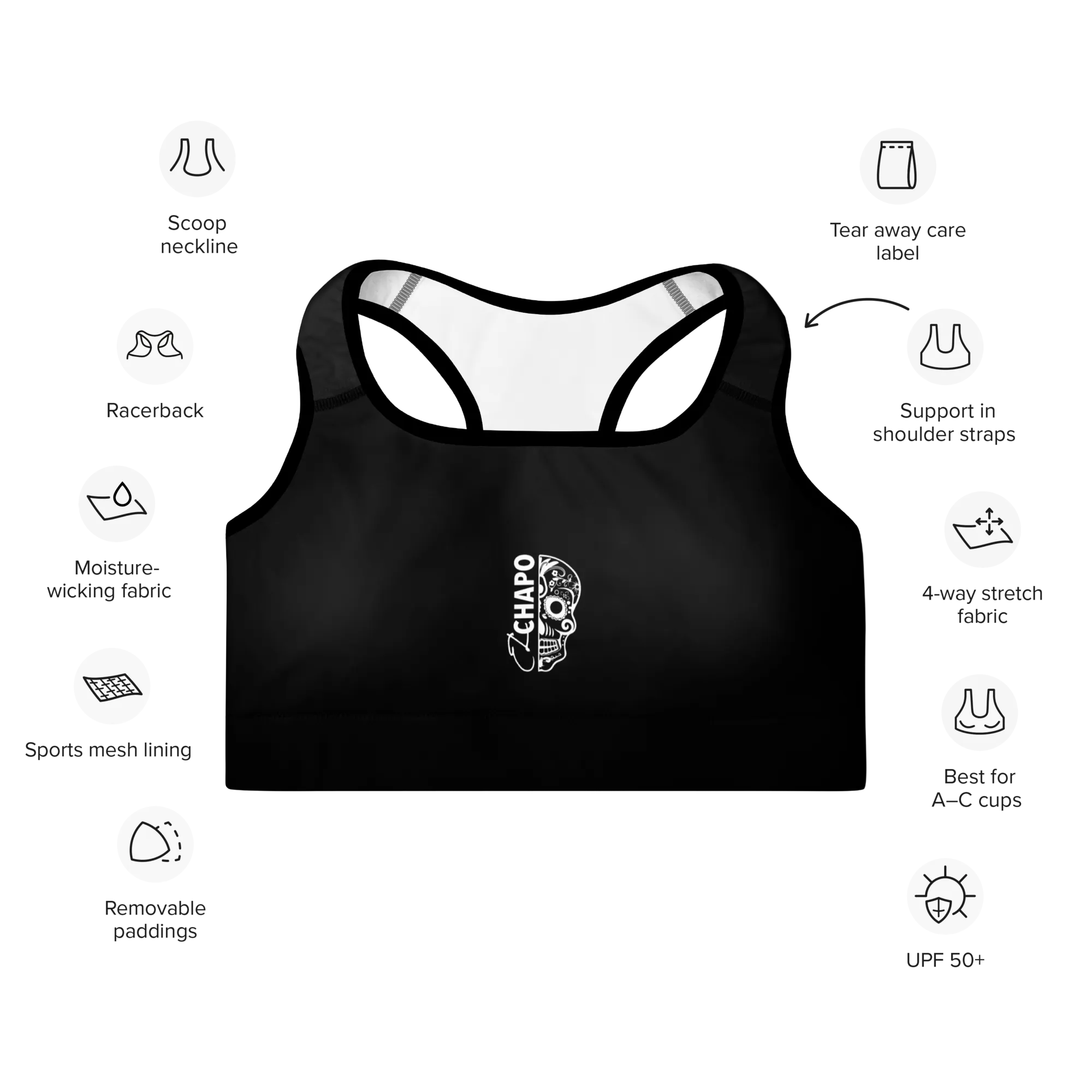 El Chapo Logo BLK OUT Padded Sports Bra