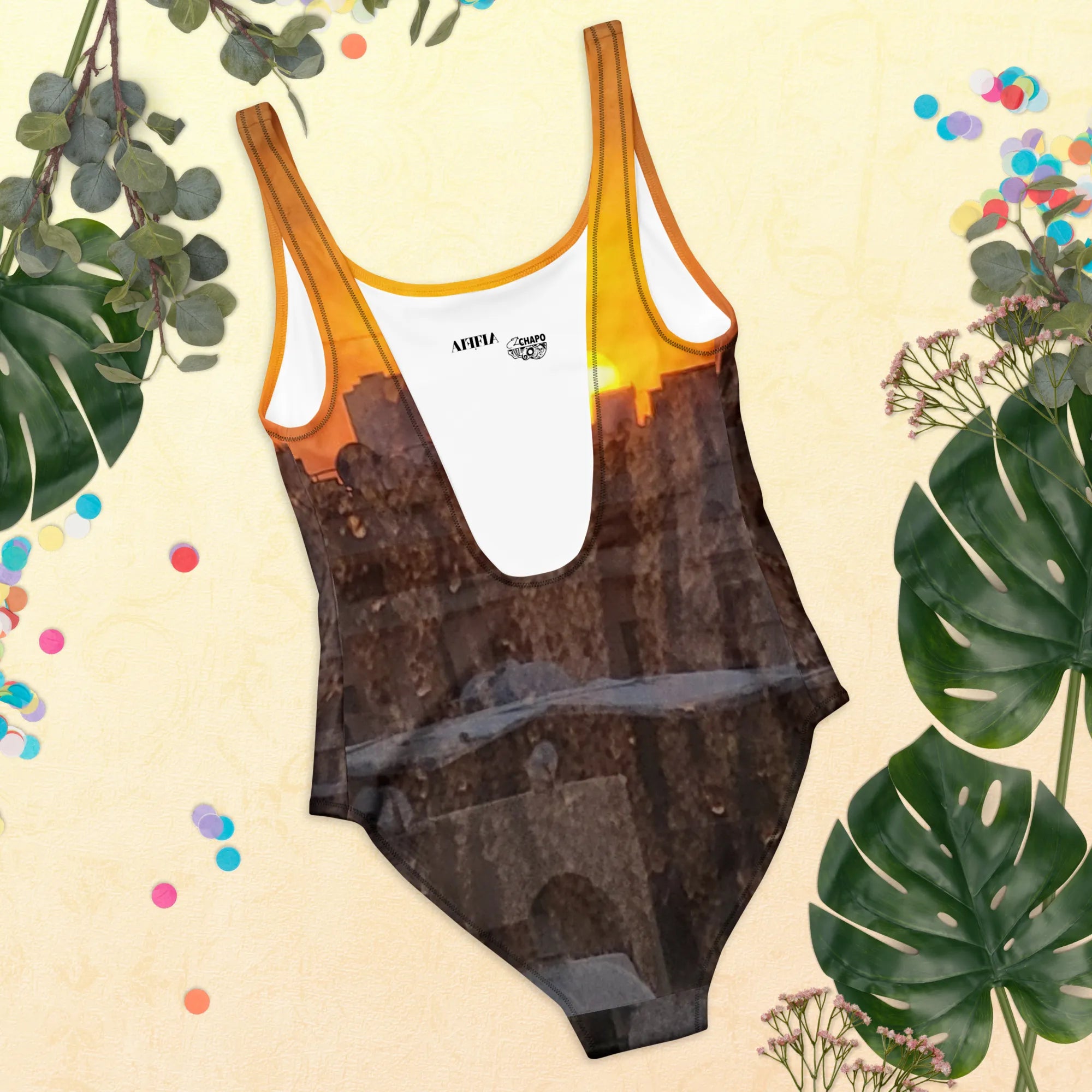 The El Chapo Sunset Brunch One-Piece Swimsuit. Add it to your collection today!