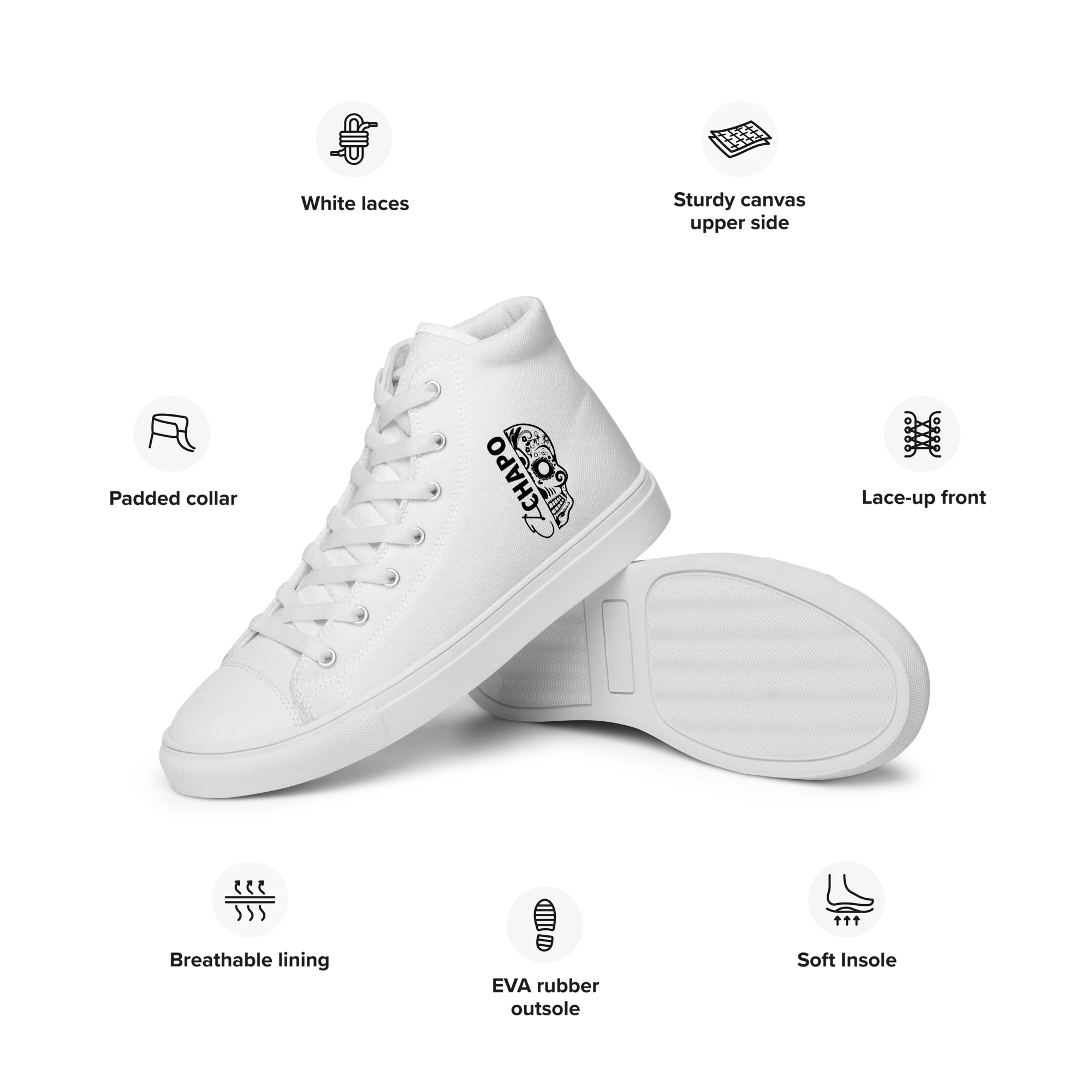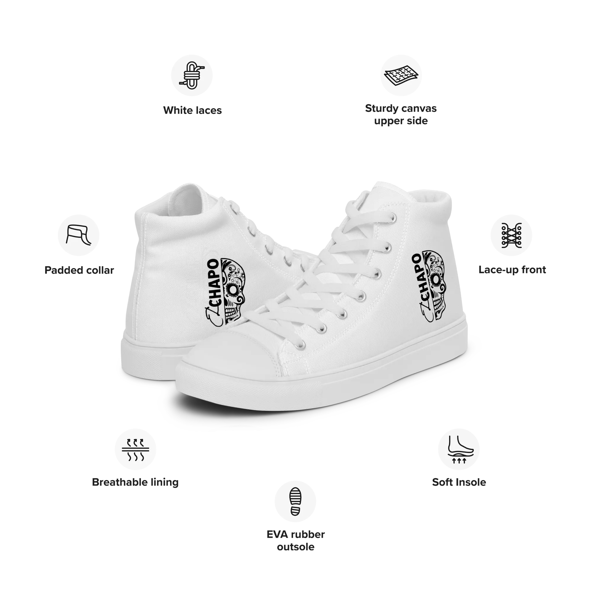 With a classic lace-up design, El Chapo WHT OUT Women’s high top canvas shoes are ready for any adventure. Stand out with style and confidence—because your journey starts here.